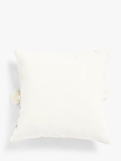 Handwoven cushion with soft fringe details for a relaxing feel.