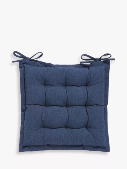 This quilted seat cushion has a water-resistant coating and is suitable for outdoor use. However, we recommend that you store it in a dry place indoors when not in use.